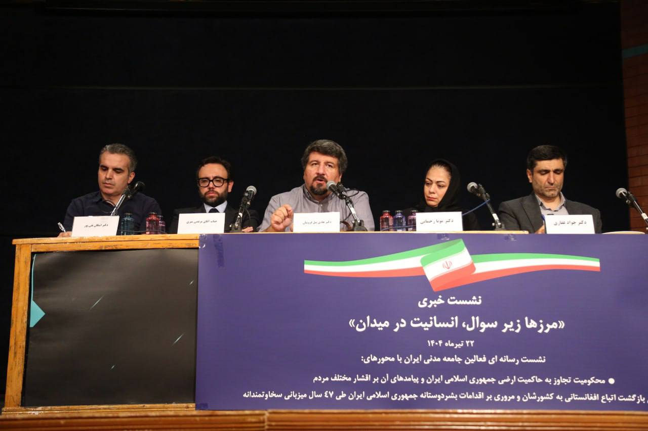 به گزارش روابط عمومی موسسه کنشگران توسعه فردا؛ نشست خبری «مرزها زیر سوال؛ انسانیت در میدان» با حضور جمعی از فعالان برجسته حوزه جامعه مدنی برگزار شد و به بررسی تحولات اخیر کشور، موضوع تجاوز به حاکمیت ارضی جمهوری اسلامی ایران و پیامدهای آن بر اقشار مختلف مردم، بازگشت اتباع به افغانستان و نیز اقدامات بشردوستانه جمهوری اسلامی ایران در طی ۴۷ سال میزبانی سخاوتمندانه پرداخت.